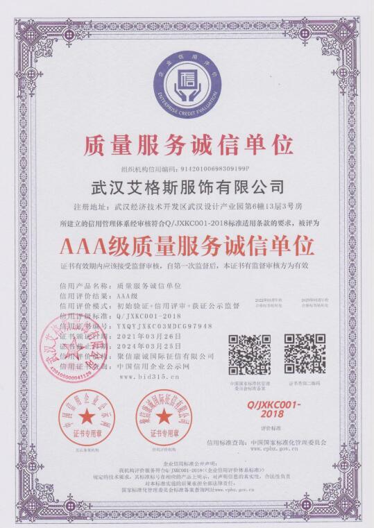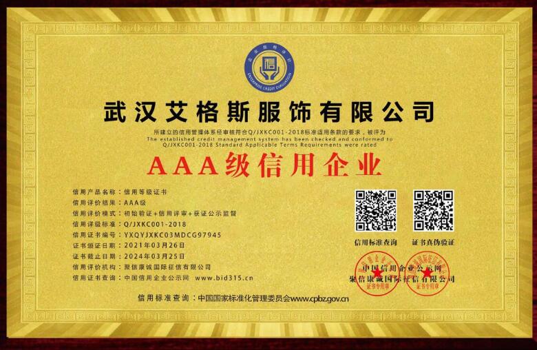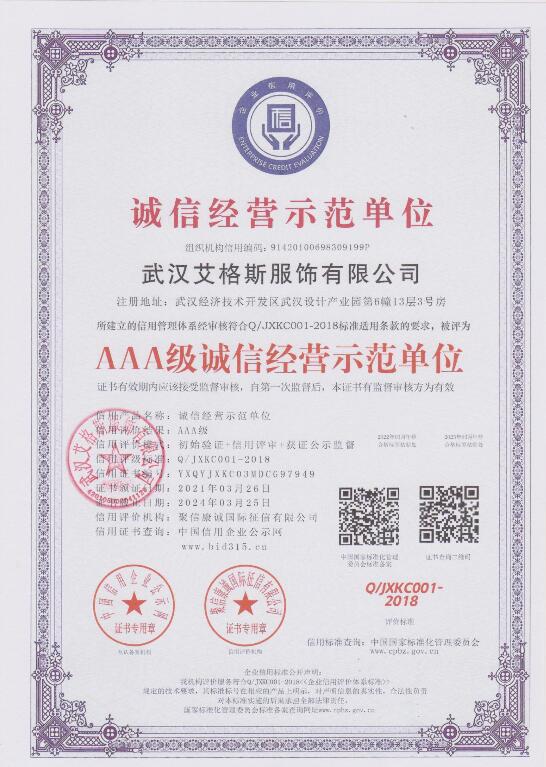 AAA級(jí)誠(chéng)信經(jīng)營(yíng)示范單...